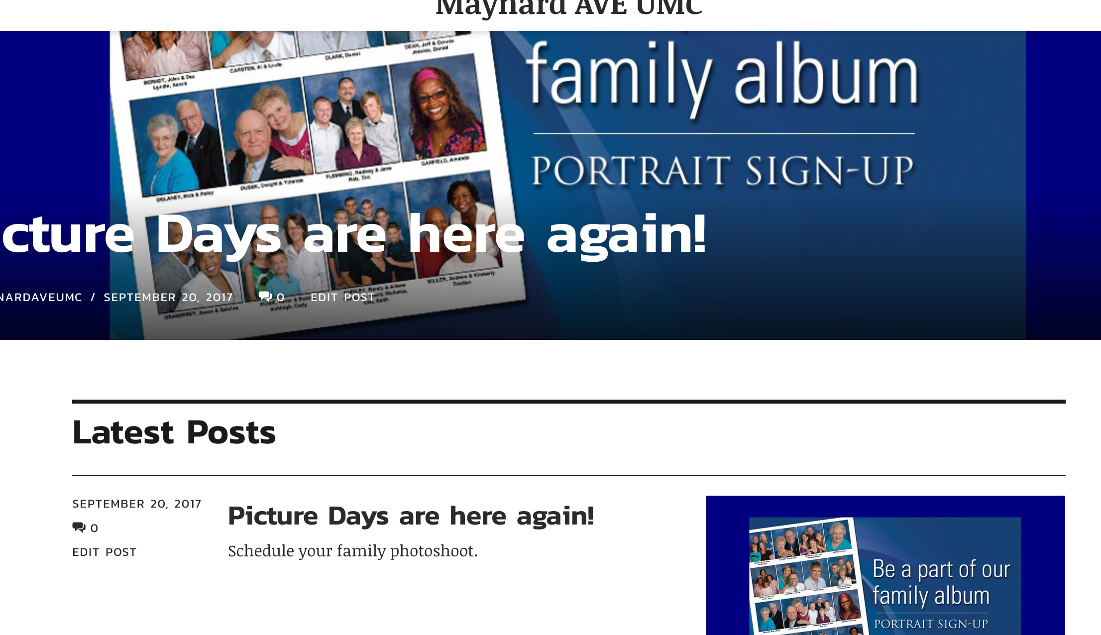 Volunteer group website project for Maynard UMC. This website was built specifically in Wordpress so the individuals who work for the church are able to update the website themselves. A co-worker and I built the backbone of the project and this website is still under construction.